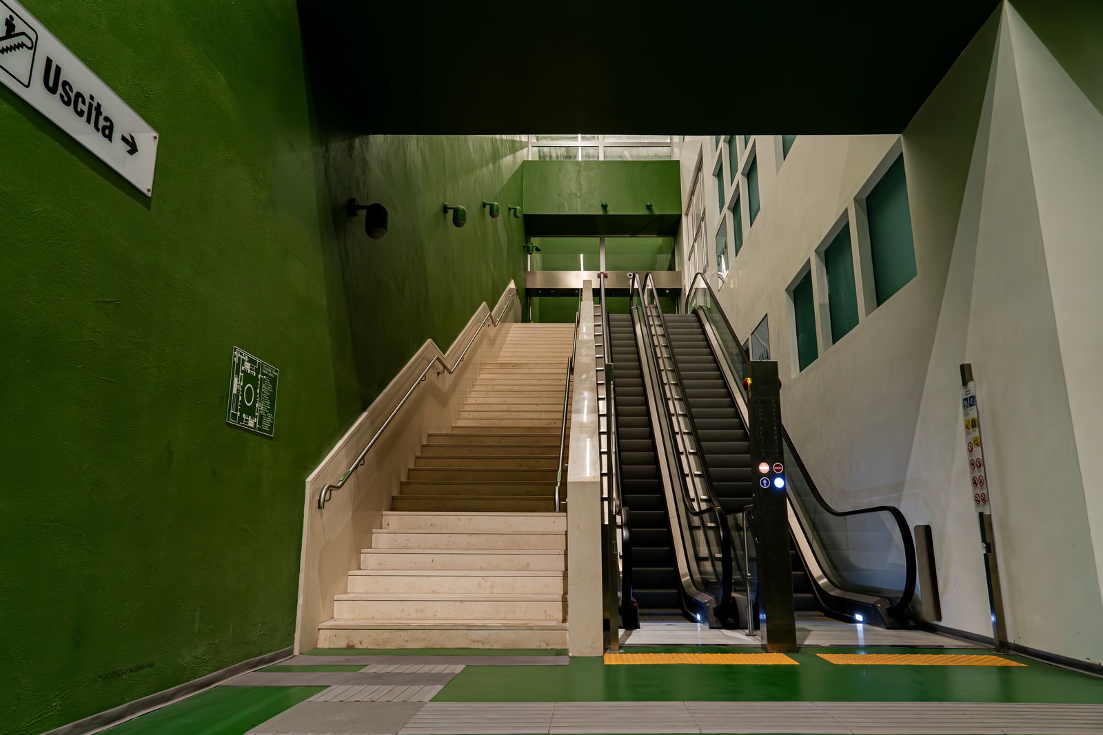 Ogni punto della linea, progettata da Umberto Siola e impreziosita dagli interventi artistici di Peter Greenaway, diventa una tappa di questo viaggio simbolico, che rappresenta l’incontro tra due forze opposte ma complementari: la luce e il buio, l’ascesa e la catabasi (Nel mondo greco, la discesa dell’anima nell’oltretomba).