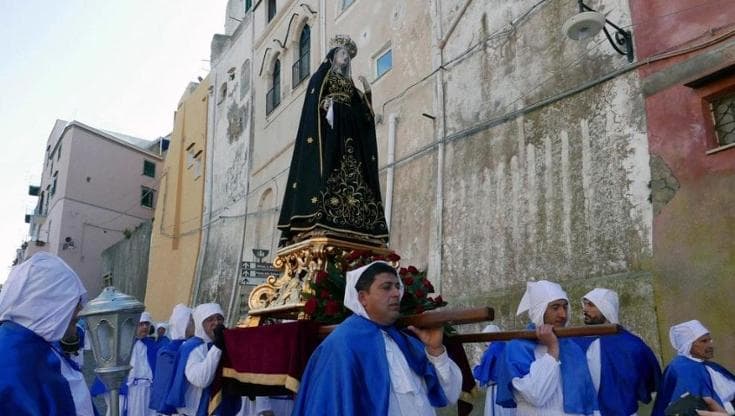 La processione ha luogo la mattina del Venerdì Santo e parte dall’antico borgo di Terra Murata per scendere verso la Marina Grande lungo le strade dell’isola.
